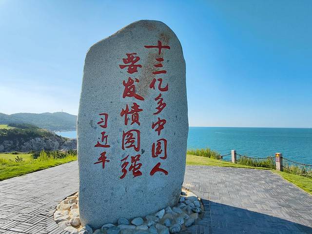 东泓炮台位于刘公岛的最西端,有多处炮台遗迹以及英军占领时留下的营地。炮台沿海岸线而建,过去发挥的是守护的功能,是我国海域国门的一道防线,但是这些炮台已经退役,留在山坡上静静见证着历史的沧桑。东泓炮台的西端有一山坡,上面立有主席题的字:十三亿多中国人做人要奋发图强。也因主席曾在此处拍照,而成为刘公岛上最网红的打卡地。
