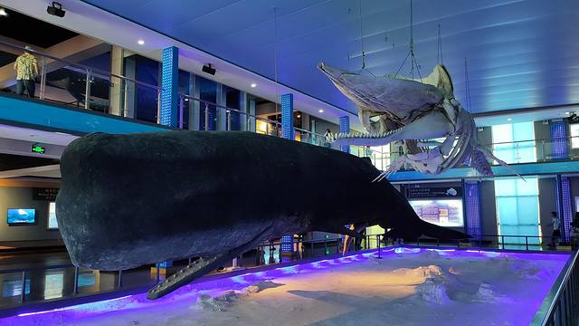 刘公岛博览园是一处融刘公岛悠久历史与丰富文化于一身的综合性游览园区。再现了刘公美德、甲午风云、英租历史三大主题,堪称是解读刘公岛的百科全书。在博览园中,有一处以实体标本为展示的展馆,镇馆之宝是抹香鲸标本。这头抹香鲸是世界上最大抹香鲸,长约19.6米,重是50.1吨,在这里它的表皮和骨骼以及重要器官都被做成了标本,展示给大家。