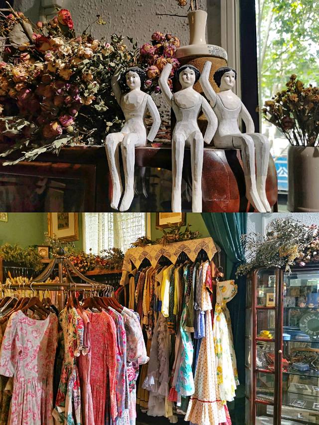 这家咖啡店,一半是甜品咖啡,一半是VINTAGE服装,主做英伦风小洋裙和很Funky的90年代复古风男装。两家店融为一家店,结合的刚刚好!