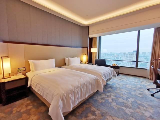 酒店房间宽敞,约有40多平,在寸土寸金的市区能有这么大的客房面积,真是很难得。客房里边配置非常齐全,作为五星级酒店是标准自然是不用多说的。装修素雅大气,色调自然,让人感觉舒适。除此之外酒店还有24小时健身房,入住的客人可以免费使用。恒温泳池,按摩池,蒸汽浴,还有桑拿都配置齐全,满足热爱健身运动的顾客需求。