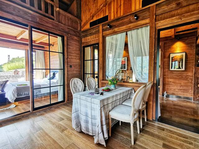 每一栋木桶都配有一方小院。小院虽小,但院里景致各异。随四季变化,闲坐院中谈笑鸿儒。星河之下,如梦似幻,与爱人立于星空之下,红酒之后,共筑爱巢,让人浮想联翩。