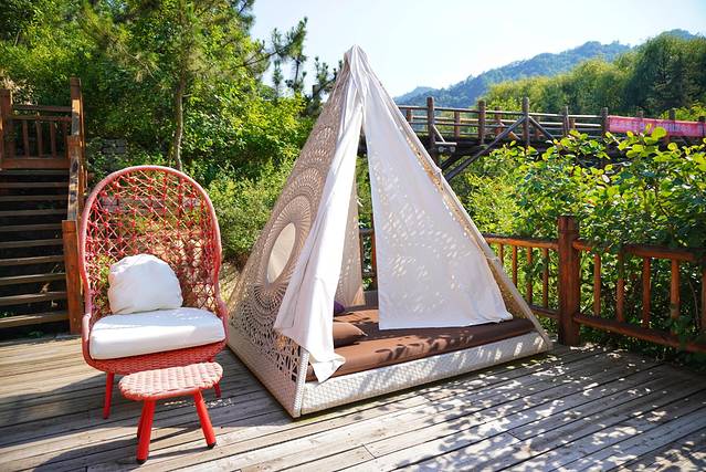 当然,最为出彩的,还是九如山的民宿。不得不说真的是太棒了。我们这次入住的是九如山的不二木居,是纯木质结构的别墅,是的济南唯一一家五星级民宿。除了不二木居以外,九如山还给了我们很多民宿上的惊喜,热情的工作人员还带我们参观了这里的快乐天体帐篷营地,木桶民宿,以及比较性价比高的猫窝民宿,还有超级豪华漂亮的寸光别墅。不管你是情侣蜜月,还是家庭出行,还是闺蜜同游,这里都有一个适合你的居住的空间,让你体会完美的度假时光。