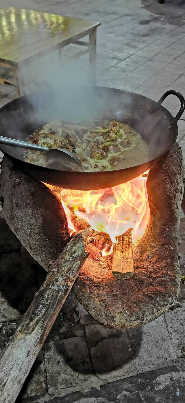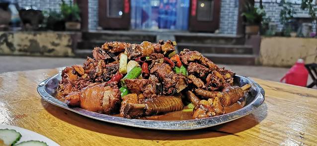 来了临沂,怎么能不尝尝煎饼和炒鸡呢?!以泥炉木柴生火,用铁锅炖炒,再等大火收汁儿,一份香喷喷的炒鸡就做好了。