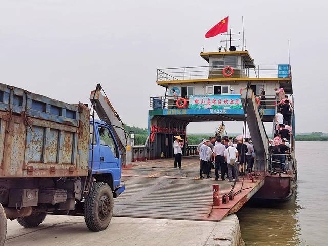 想要登上微山岛,要乘坐进岛轮渡。每人只收4元,是往返票,看似不大的岛上竟然住着差不多2万人。汽车也可以登船,自驾游依然是方便的。