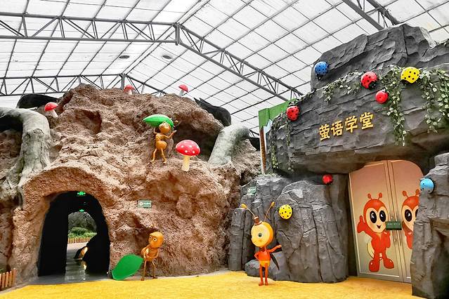 先经过大门的一片儿童游学娱乐区,再乘坐景区电瓶车,才会正式进入蝴蝶谷。