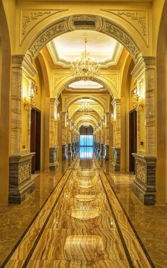 酒店的主体是欧乐堡国际酒店,也是整个酒店群中规格最高的酒店。主要偏高端商务,例如大型的会议,高端婚礼,商务沙龙等。一进大堂,穹顶璀璨,贵气逼人十分大气。这里设有9间总统套房、VIP主题客房,都是走得奢华风格。宴会厅是采用无柱设计,超级大,视野相当好,很适合婚礼和大型会议接待。
