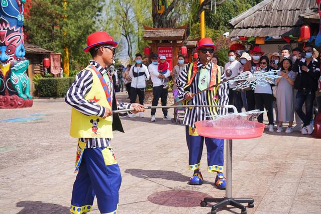 这次来丽江千古情游玩,幸运赶上“花痴节”,一进入景区就看见许多身着古装的花仙子,或翩翩起舞、或朝你迎面微笑招手。正值春天,樱花园里各种鲜花也竞相盛放,色彩斑斓,就像被打翻的颜料盘,看起来异常美丽。