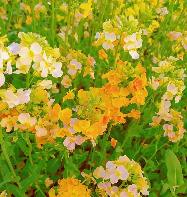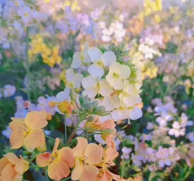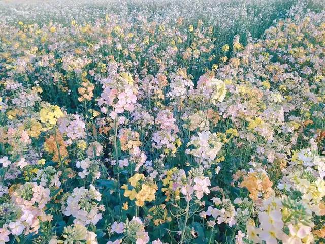 如果你还只是见过传统的黄色油菜花,那么你一定要来瞅瞅海岛艺术田园这片五彩花海。