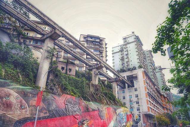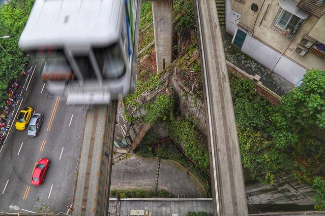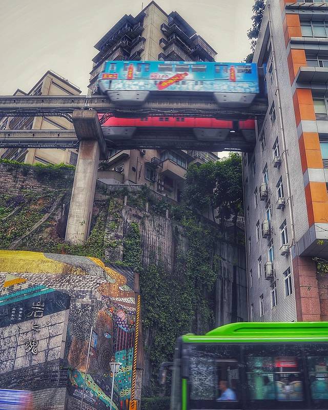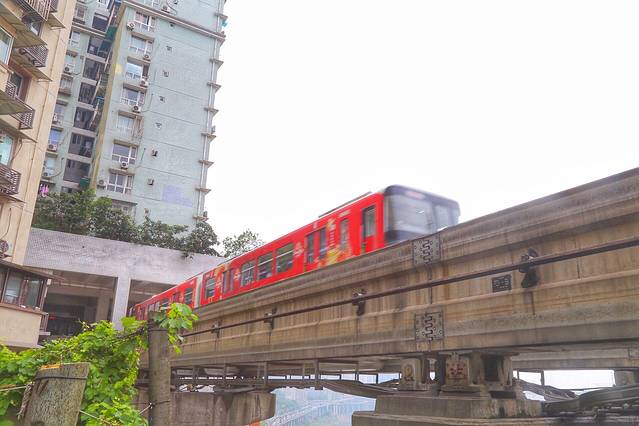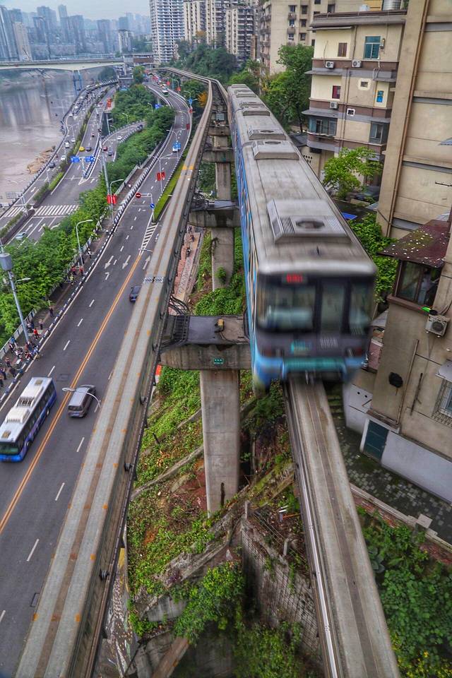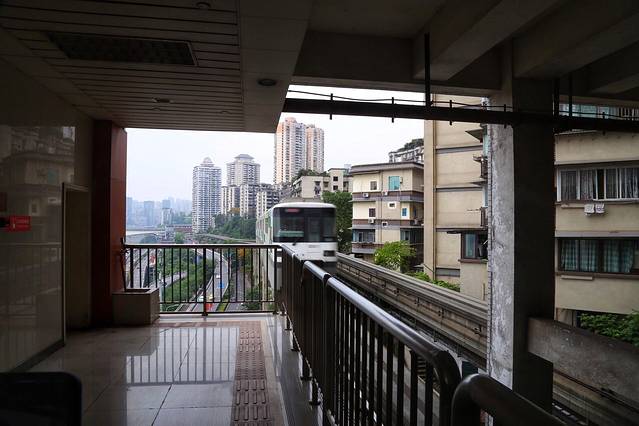 因此站点是在居民楼里,而成为网红轻轨列车🚄。