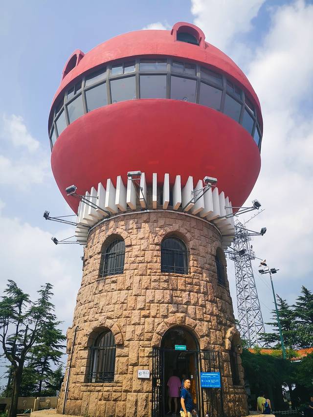 信号山最重要的就是这个红色的旋转观景楼,是一个三层的小楼,楼梯很窄,三层是旋转观景台,人超级多,感觉整个公园的人似乎五分之四在这里了👫👬👭