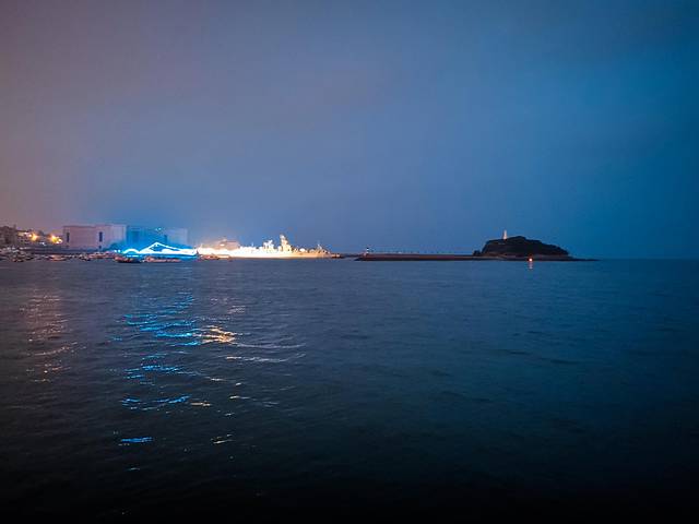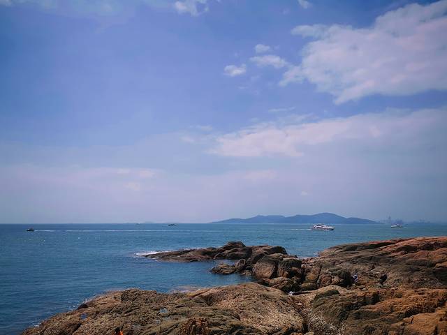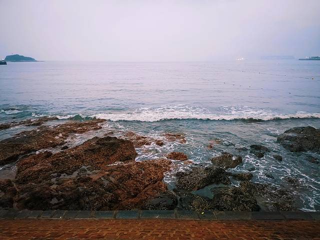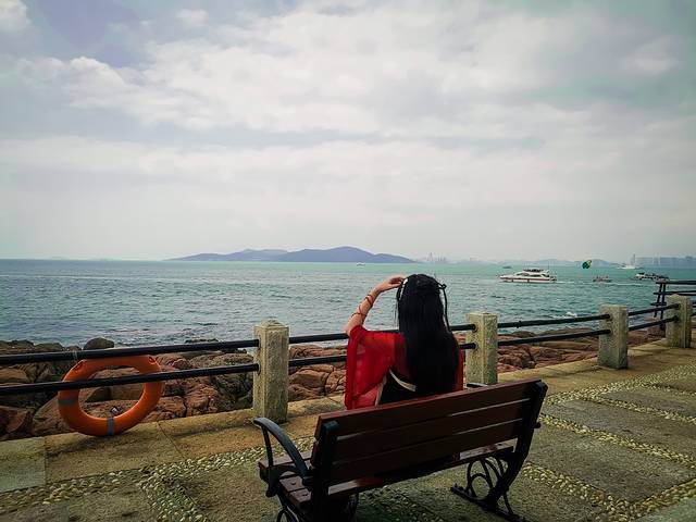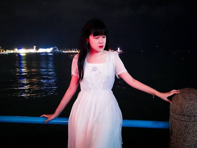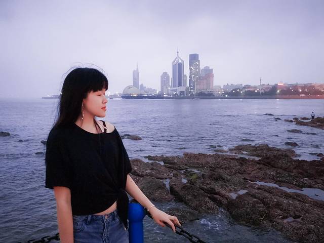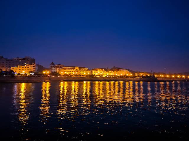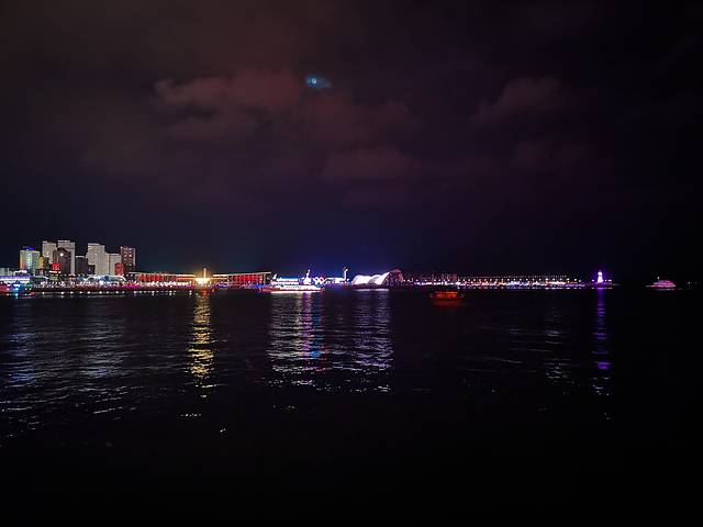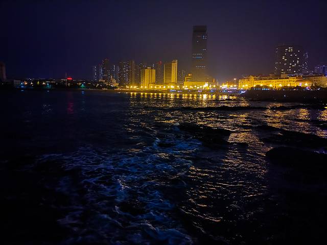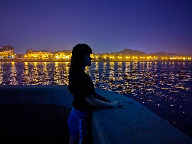 隔海眺望,海风惬意,那边是小 青岛 在与我们遥遥相对,闪烁的航标像是在向我们致意,水天一色,波浪荡漾,应着景,忍不住就哼起了歌:“海浪无声将夜幕深深淹没,漫过天空尽头的角落……”🌊