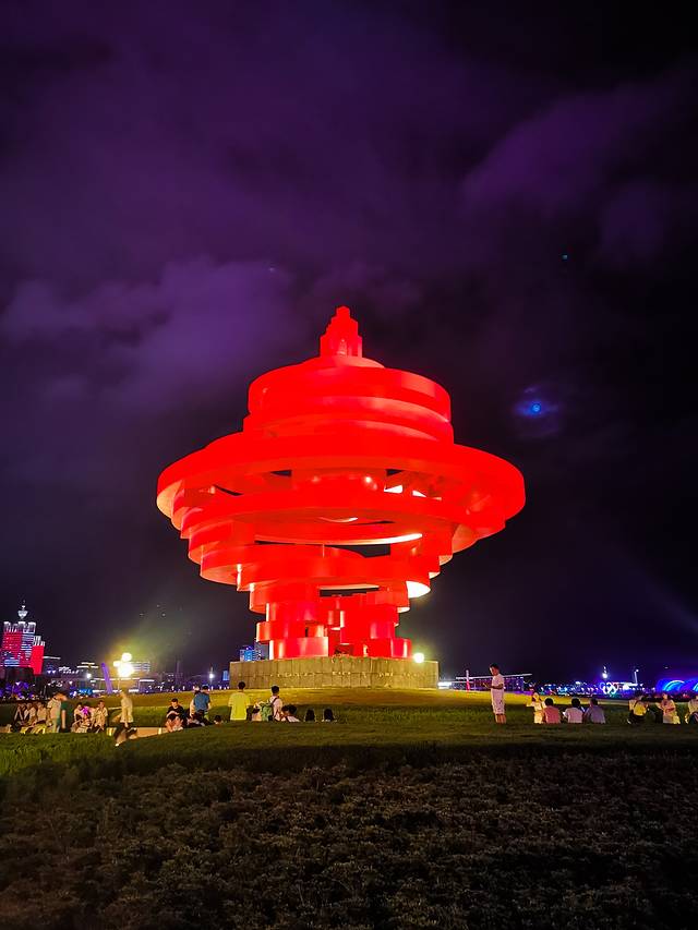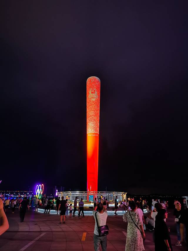 如果说五四广场是喧闹,那么奥帆就是喧嚣。路边炸串烧烤的滋滋声很是诱人,左耳朵是弹唱歌手声声入耳的歌声,右耳朵已经是有奖竞猜的激动人心。一路喧嚣,经过小吃街,经过停泊的舰艇与轮船,尽头是当年的火炬。很令人感慨,距离08年那场万人空巷的盛世,竟已过去十多年了。