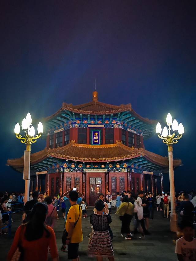 五四广场的人真的很多,年轻人带着各种灯光装饰物拍网红照,中年人在岸边拍标准游客打卡照,老年人多数拉着一个玩小玩具的小孩,人声鼎沸,不绝于耳。