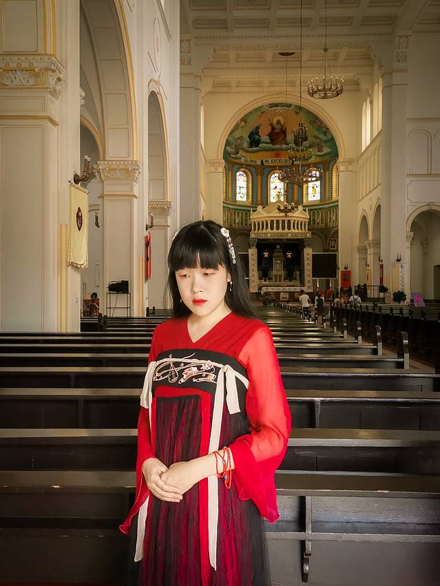 这天的第一站就是圣弥 厄尔 教堂,其实刚开始,我也觉得是不是有点格格不入,因为周围和我一样穿的比较不寻常的,无不是暗黑系的lolita或者小礼服,我这一抹红无敌显眼(当然平日里穿汉服、汉改,早已经对那些大惊小怪、惑之不解的目光无惧😚),只是怀疑是不是不搭。