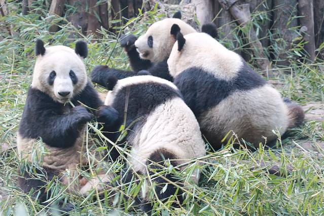 可爱的熊猫宝贝们正在吃竹子呢🎈