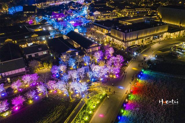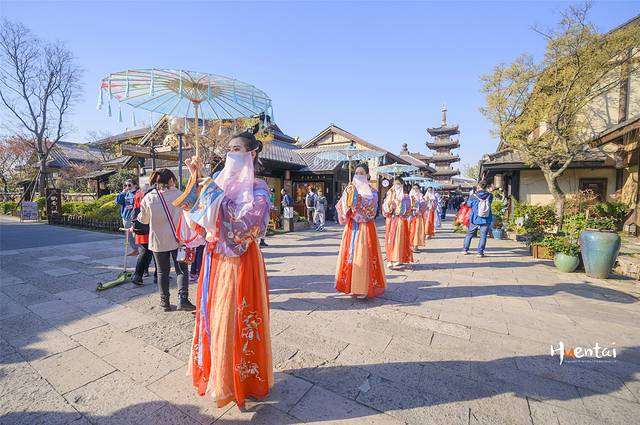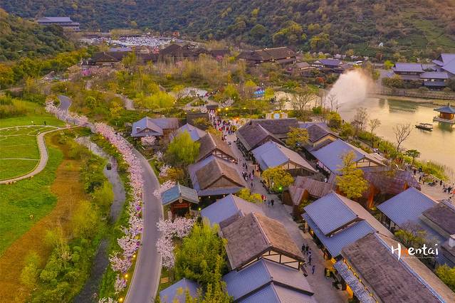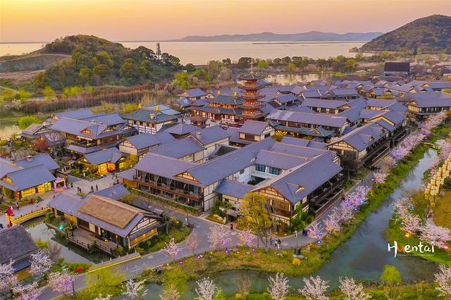 我们是在第一天的下午16点来到拈花湾的,先是在古镇里溜达了一圈,基本上看了一圈沿途的特色店铺以及白日里的樱花,顺便踩好了路线,为的就是晚上能够更合理的游玩。