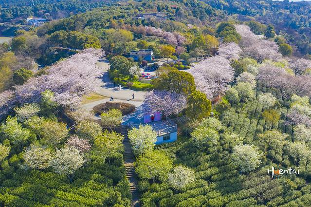 确切地说红沙湾是一处生态农业园,坐落于无锡太湖山水城旅游度假区南部,梅梁湖与外太湖的交汇处。从上面的航拍图可以看出这里的樱花种植的也是有层次的,分布于高、低两条道路边上。可能来的时候是非周末,所以来红沙湾赏樱的游客并不算多,这也让我们有了很好的创作空间,给静雨拍了很多个人的照片。