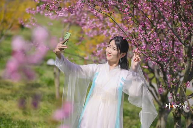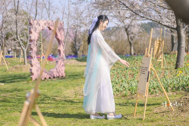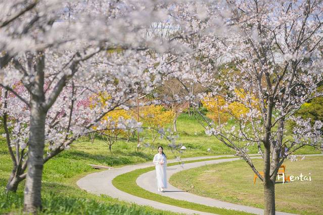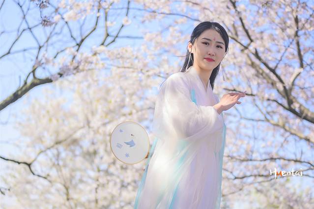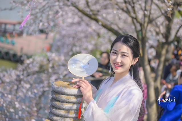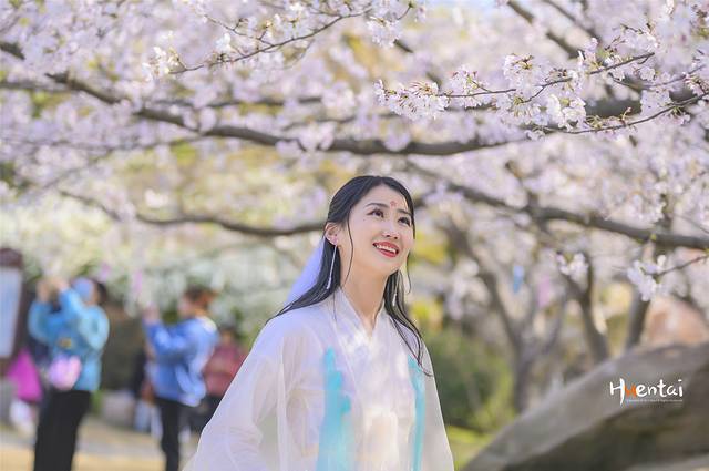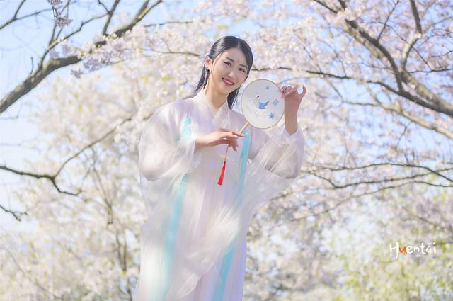 3、赏樱拍照可以穿汉服、和服等特色服饰打卡,但要避免颜色过浅及单一,以免和樱花撞色。若穿浅色系衣服可以搭配一些配饰,起到点睛之笔的作用。