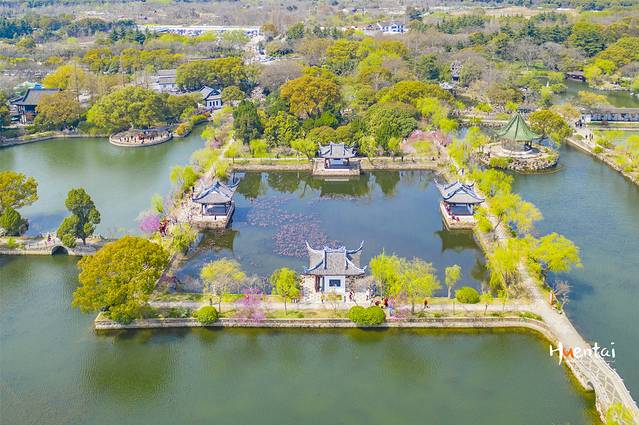 蠡园里亭子很多,最为出名的莫过于四季亭。这四座亭子造型完全相同,但旁边种的植物却不相同,不同的季节呈现出的是不同的美景。航拍看下来,四季亭方方正正,很有设计感。