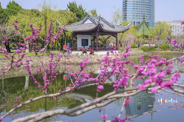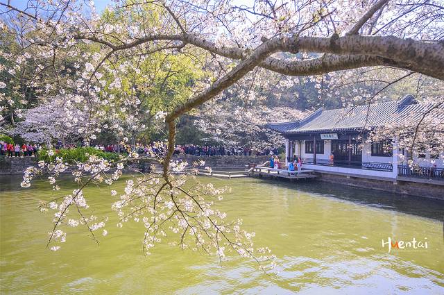 入园后才知道蠡园的桃花节是每年的四月份,樱花结束后看桃花,现在还没到最佳观赏期,但依旧有很多大妈在拍照,拍视频。江南的园林从来都是不缺少春色的,蠡园内也有一些不同品种的樱花盛开,但是扎堆成林的并没有。找一株开地好的,再搭配上建筑、人物也能拍出一些好的照片。所以我宣布:蠡园赏花也算成功!