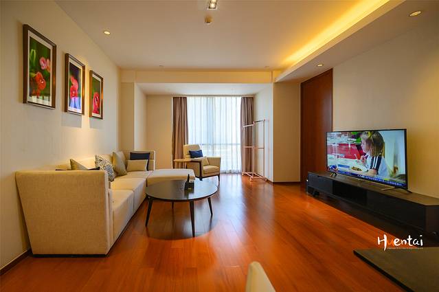 这次来因为是旅游旺季,临时预订景区内的住宿不太好订,于是就选择入住了一晚优享家·臻选酒店公寓。33层的套房空间特别大,会客厅和卧室分开,有着很好的私密性。卧室三面都是落地玻璃,可以一览滨湖区城景。还配有洗衣机、烤箱等。