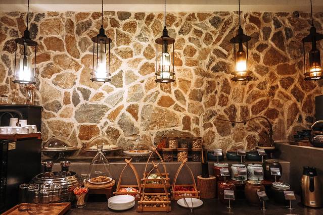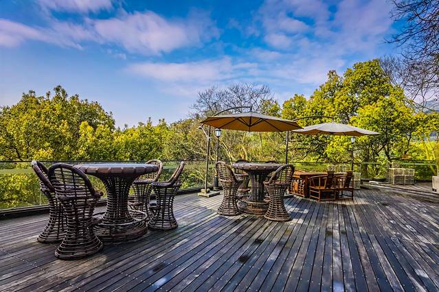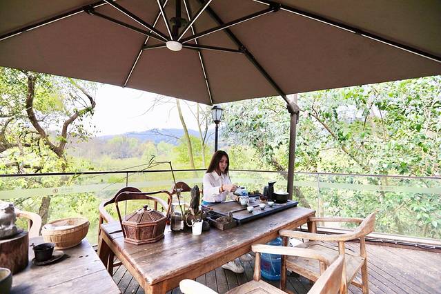 位于顶层的雅致高山观景餐厅,你可以露天可以室内,透过超大的落地窗就是九溪美景。餐厅里饮料、点心、水果、茶品等全天免费供应,在优雅音乐中美味搭配香薰与烛光,没想到山水之间的用餐也能如此浪漫。餐厅的菜品都是当天当地新鲜自然的食材,品味原汁原味的鲜~