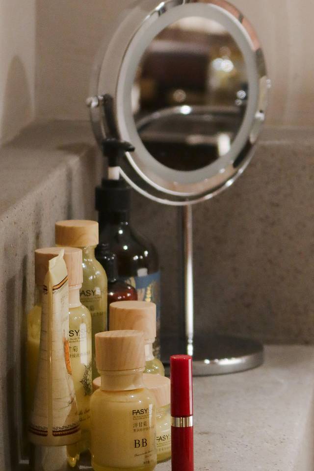 原始与现代相结合的房间里,我没想到会是超五星级的配套设施!除了酒店基本的洗漱用品外,居然提供了超全的整套的洗护用品:有卸妆水、洗面奶、精华液、护肤水、乳液、洗头膏、护发素、沐浴露,太惊喜了吧~