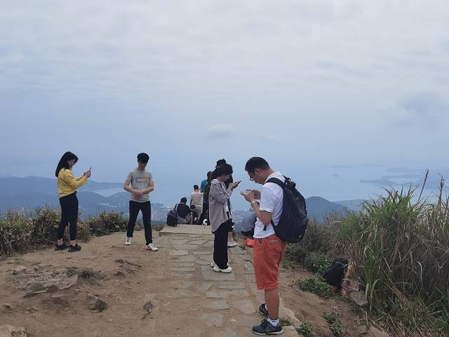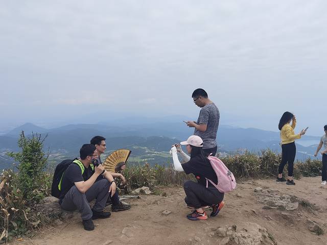 深吸一口新鲜的空气,仰望天空,蓝天白云跟我是那么亲近呢,似乎伸手就可摸到,原来深圳也有那么蓝的天,那么白的云,在这还没被污染的世外桃源。俯视山脚,似乎听到了大地母亲的心跳,原来那些在我眼中是那么高不可攀的山现在居然被我踩在脚下了,自豪感油然而生。眺望远方,对面是东部华侨城的观音坐莲,还有那蔚蓝的大海,繁忙的盐田港……“一览众山小”的感觉真好。