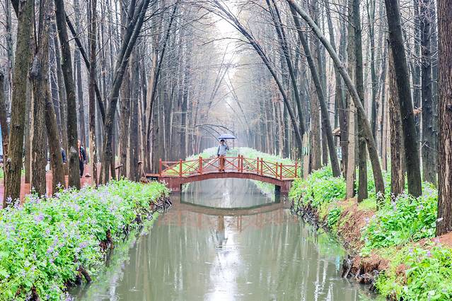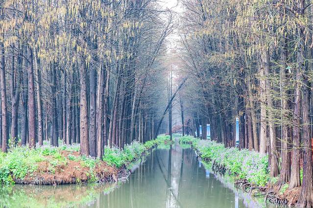 乘坐竹筏游览李中水上森林公园是一种不可错过的体验。水巷里长满了水杉、池杉等,各种鸟儿在森林里自在穿梭。竹筏缓缓,鸟鸣悠悠,下船以后有段水上栈道拍照也超有感觉的。