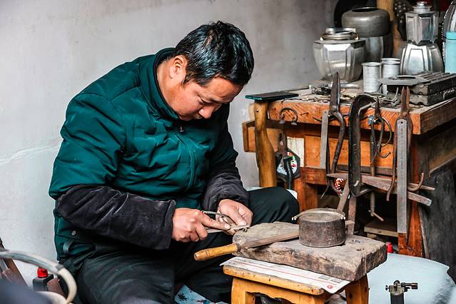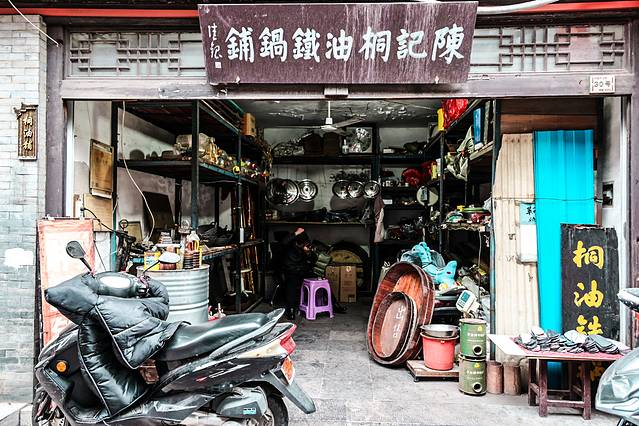 我发现金东门老街与那些仿造的古镇及老街不同,它的岁月感是肉眼可见的。街道并不宽,甚至显得有些拥挤、破旧,可这一点也不影响我对它的喜欢。每一家店铺似乎都上了年纪,比如杂货铺、桐油埔、锡器行、牌匾坊等。店铺主人基本上不会主动招揽客人,他们在铺子里忙活着自己的事情,只有有顾客上门时,他们才热情地以笑脸相迎。街道店铺林立,却并没有很浓的商业气息,有的只是满满的烟火气。