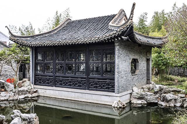 兴化博物馆的侧门直通李园船厅。李园船厅曾是清代富商李小波的私家花园。“你们看,像不像一艘船?”导游小姐姐话音刚落,大家纷纷表示的确很像一艘船,叫“船厅”还真是既贴切又形象呢。地上布满了青苔,参天的古木将船厅映照得更具韵味。船厅内,不管是珐琅玻璃还是楠木落地荷门,无不彰显着主人的身份和地位。