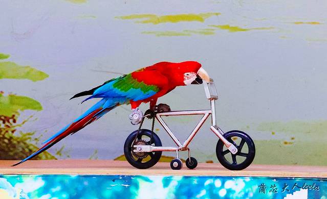 这里每天有动物表演,平时表演场次少,周末会多一点。身怀绝技的鹦鹉会踩单车、打篮球,还能识字、升国旗和溜冰呢!