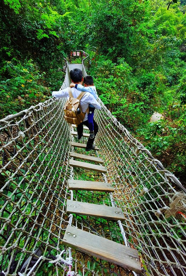 走过玻璃桥之后,可以坐峡谷飞索到达半山腰,跨度有300多米,由于速度不算快,大人小孩都可以玩,当你从250多米的山峰高速坠落时,绝对会惊声尖叫。