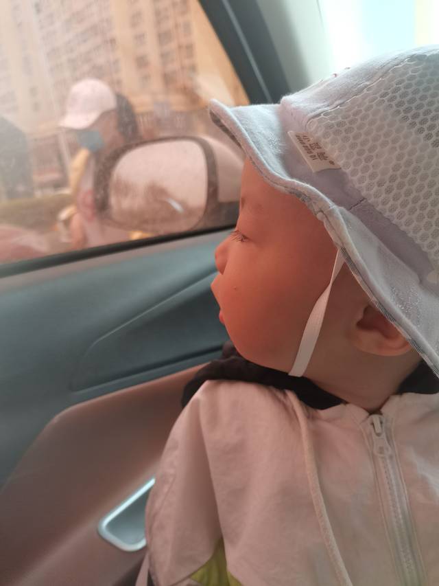 没有刻意起早,儿子还是照老样子睡到11点,收拾完到她家小区门口等她和娃