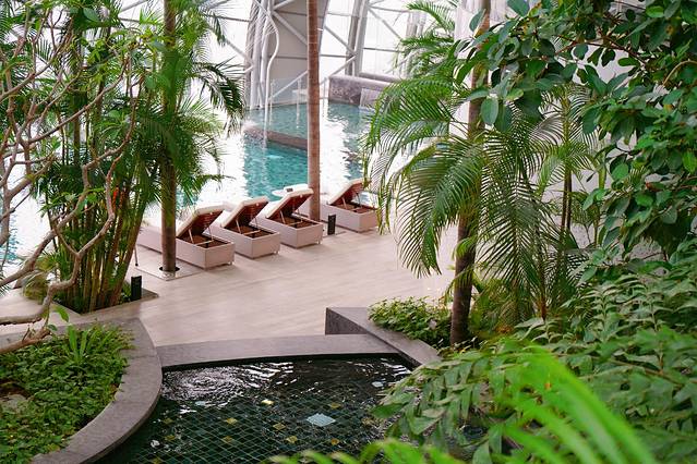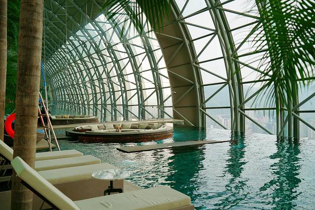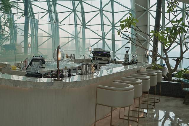 乘坐专属电梯,可以直达42层水晶连廊。在3000平米的俱乐部私密空间中,无边泳池、温泉泡池、健身房、咖啡吧、行政酒廊,应有尽有。