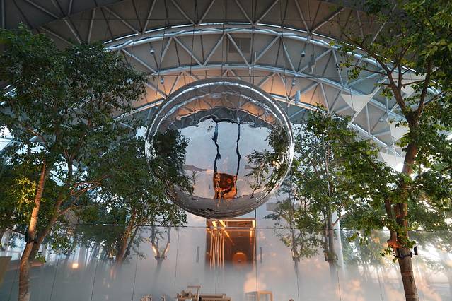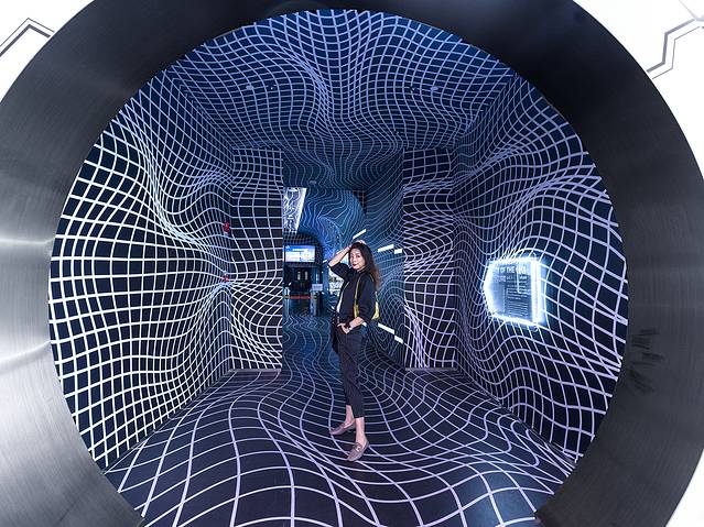 之后穿越隧道,乘坐电梯,来到250米高空的火星主题体验区。穿梭在高耸的绿树和未来感十足的探索舱之中,感受现实与未来交叠的迷离感。