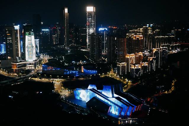 从这个角度看出去的重庆,是人们口中的“小香港”。密密麻麻的楼宇灯光闪烁,在夜幕下形成又一幅景色,和白天截然不同。