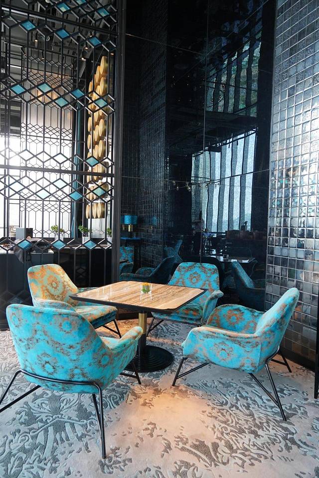菁餐厅的装潢是带有复古气息的美式风格。绿松石色和金色搭配,典雅又不沉闷,高级感十足。