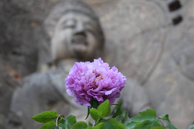 如果美丽的花朵是大自然的馈赠,那龙门石窟是人文艺术的瑰宝。它是世界文化遗产、中国佛教三大石窟艺术宝库之一、中国石窟艺术的“里程碑”。残缺的轮廓,模糊的文字,岁月的痕迹丝毫不影响它的那顶天立地的庄严感,令人震撼。