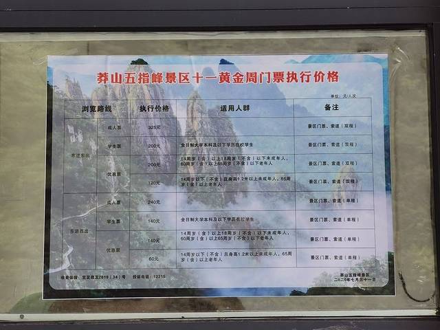 门票我拍了照片,到家可以看看,325元含上下的索道,对于我们来说带着孩子还是很方便的呢!