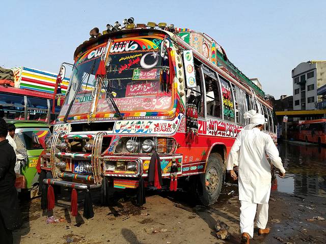 拉合尔是一座有二千多年历史的古城,莫卧儿王朝帝都。现在巴国第二大城市,旁遮普省会,也是巴国文化艺术中心,距印巴边境只有20多公里,如果你是喜欢历史人文风情,来这里绝对不会错,老城街头车水马龙人车混杂杂乱无章,见缝插针乱闯马路,与印度街头无异;马路上的巴士货卡打扮的花枝招展,车身上涂抹的花花绿绿镶满饰物,头顶个大篷像个王冠,一路歌舞着从身旁驶过,晕~,眼花缭乱有你看不完的。这里跟首都伊斯兰堡算是当前比较有安全感的城市了,因为语言不通而且生活起居及饮食习惯的不同,也为安全考虑,有华人开设宾馆的地方我都选择住华人宾馆。