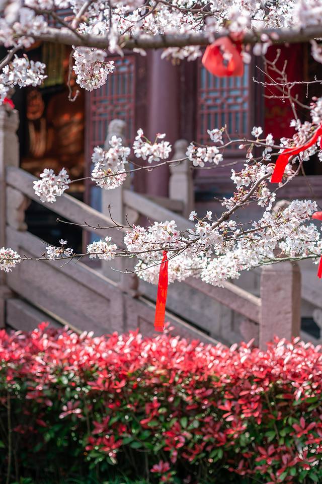 微风吹过,还能欣赏到樱花雨,很是惊艳,倘若你身穿古装漫步其中,瞬间有种穿越的既视感。