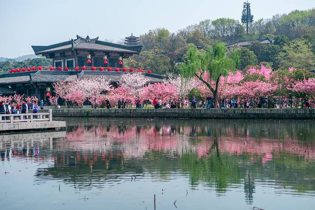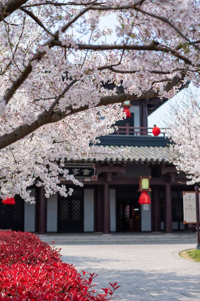 无锡影视基地也就是中央电视台无锡影视基地,位于无锡滨湖区山水西路、坐落于风光秀美的太湖畔,这里不仅仅是拍摄的影视基地,还是国家5A级旅游景区。而此时三月的影视基地,更是美出了新天地,樱花海棠花烂漫时,与这里的古建筑相辅相成,构成一幅绝美的画卷,吸引了很多游客前来打卡。