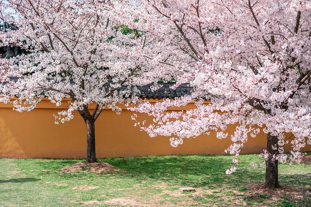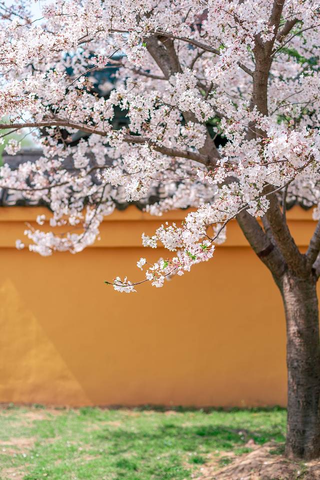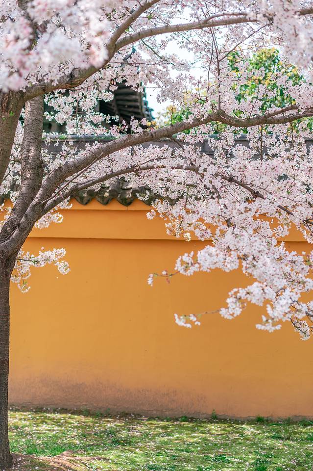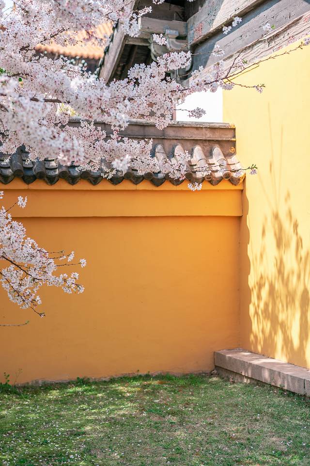 不知道是不是因为有隐秘,去这里的游客并不多,所以你并不用担心人挤人,不管是大相国寺的外面还是里面都有,而且都很美,尤其是在这里古建筑的映衬一下,很是唯美,尤其是在黄墙灰瓦前,樱花更加出挑,使人莫名的的感觉这一切是多么的美好。
