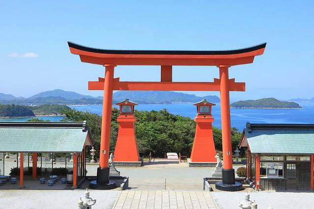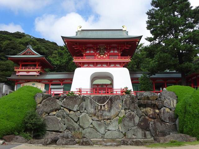 建于公元859年的古老神社,境内有日本最大的河豚铜像,还有龟山炮台等史迹。晚上,日本最大的御影石鸟居会有点灯活动。