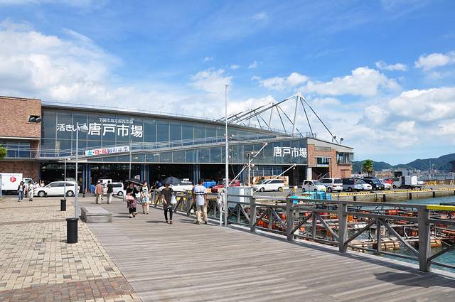 唐户市场就在龟山八幡宫对面,特别好找,中午过去吃午饭吧。山口县的河豚有名,来都来了,一定要安排一顿。