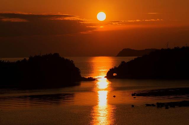 如果不去宫岛,对城和美术馆也不感兴趣,那看了锦带桥之后可以出发去笠户岛看夕阳。当然得赶上天上有太阳的时候。看夕阳的地方叫夕日岬,交通还算方便。