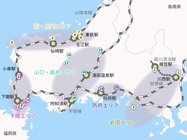 山口县是本州最西边的县,从地图上看,山口县的下关市和福冈县的北九州市就像连接火车车厢的挂钩,紧紧抓在一起。