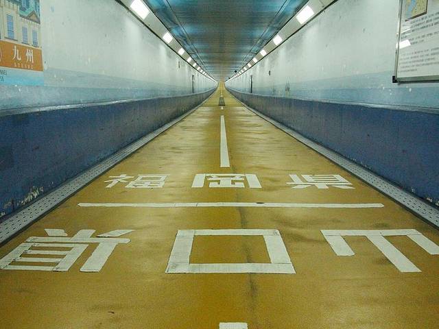 连接着九州和本州的海底隧道,全长3.4公里,在它下边有个可以供行人和自行车走的通道,大约780米,能看到山口县和福冈县的县界,尽管只是画在地上的一条线。