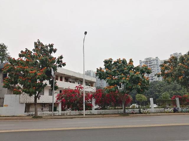 从江北大道拐进相思湖西路,就看到漂亮的无忧花和三角梅了